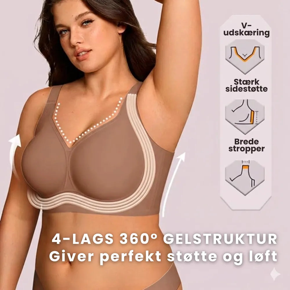 Absoluut. De innovatieve technologie vervangt traditionele metalen beugels door flexibele, ondersteunende gelstrips. Dit zorgt voor een natuurlijke lift en stevige ondersteuning gedurende de hele dag, zonder dat u last heeft van knellende of prikkende onderdelen. U geniet van totale bewegingsvrijheid en zekerheid tegelijkertijd.